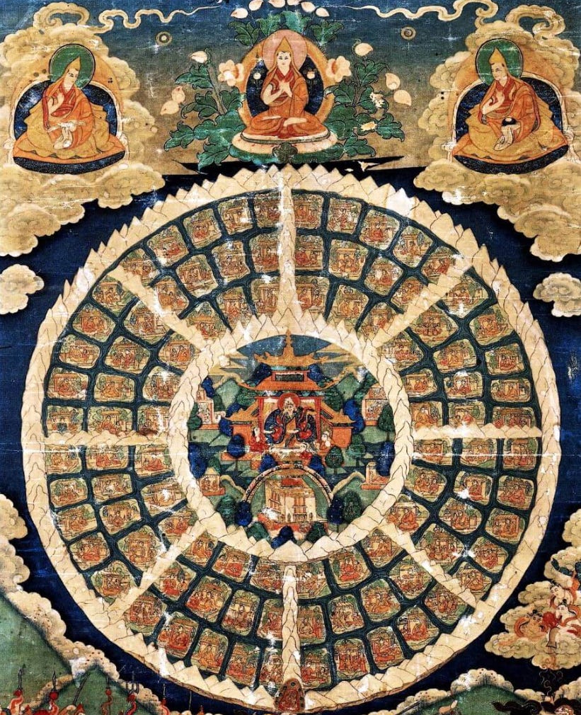 Regarding Shambhala’s geographic location, we might reference the ancient Tibetan Buddhist text called the ‘Tengyur,’ within which is a guidebook to Shambhala, called the ‘Kalapar Jugpa.’ This guidebook was first translated from Sanskrit into English in 1,604 AD by a prominent Tibetan Lama and historian named Taranatha, who had discovered it buried in the archive of a Tibetan monastery. Interestingly, for numerous stylistic and content substance reasons, it is thought that the text of the ‘Kalapar Jugpa’ dates back to the 10th century AD, around the time that Kalachakra teachings first began to manifest in India. The ‘Kalapar Jugpa’ is framed as a dialogue between a great sage named Arya Amoghankusha who is speaking to a group of lesser-sages as they search for wisdom that might save them from spiritual degeneracy. During this dialogue, Shambhala’s capital city and spiritual center, Kalapa, is introduced:
