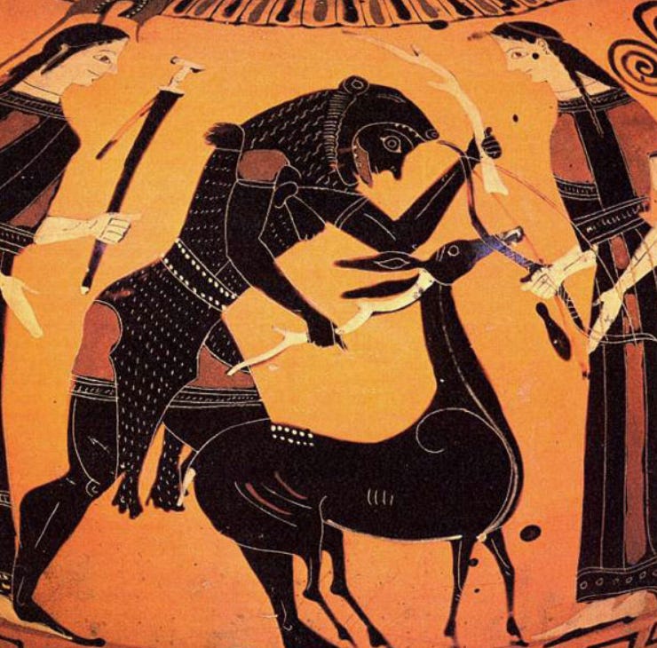 Echoing this idea that the Hyperboreans had some relation to Apollo, the 6th century BC Greek poet, Pindar, wrote that the Hyperborean people were the “servants of Apollo,” and that they would sacrifice donkeys and sing praises in their worship of the solar god. In a slightly less direct way, Pindar also mentions that Hercules traveled to Hyperborea during his third labor, in search of the Caryneian Hind; a deer with golden horns: